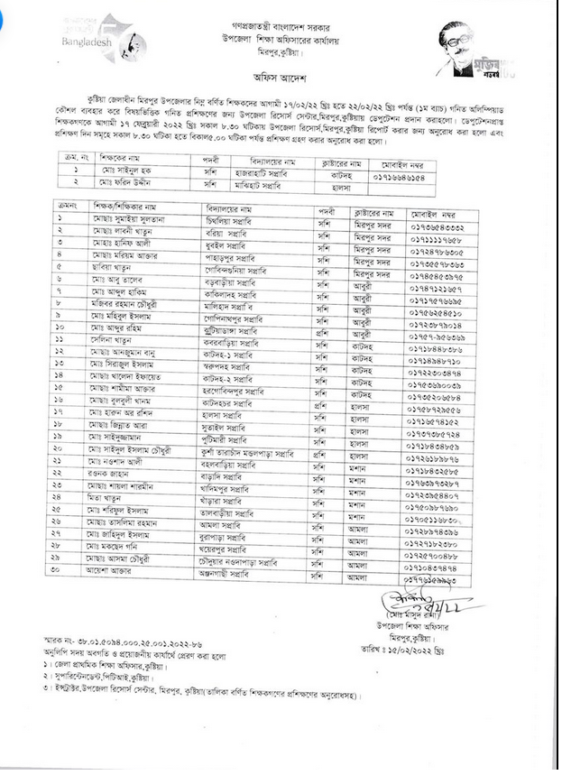 গণিত ৩য় ব্যাচের ট্রেনিং ০২/০৩/২০২২ তারিখ থেকে (কিছু নাম প্রতিস্থাপন হতে পারে)